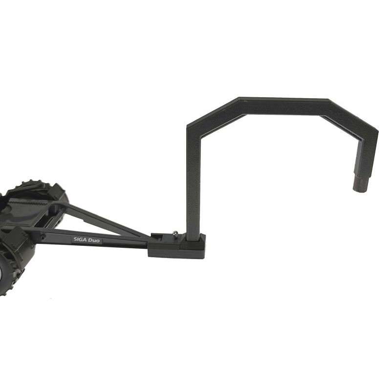 Der Schwanenhals wird auf die Deichsel des Dollys gesteckt und mit dem mitgelieferten Steckstift fixiert.