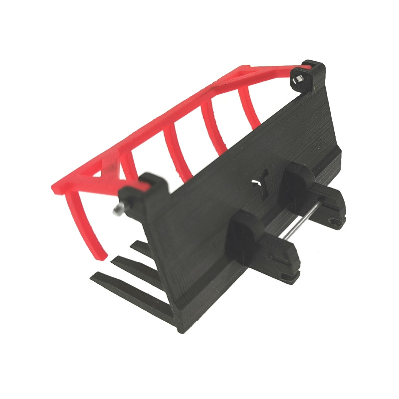 Diese Dungzange hat bewegliche rote Zinken kann das Ladegut fest umschließen.