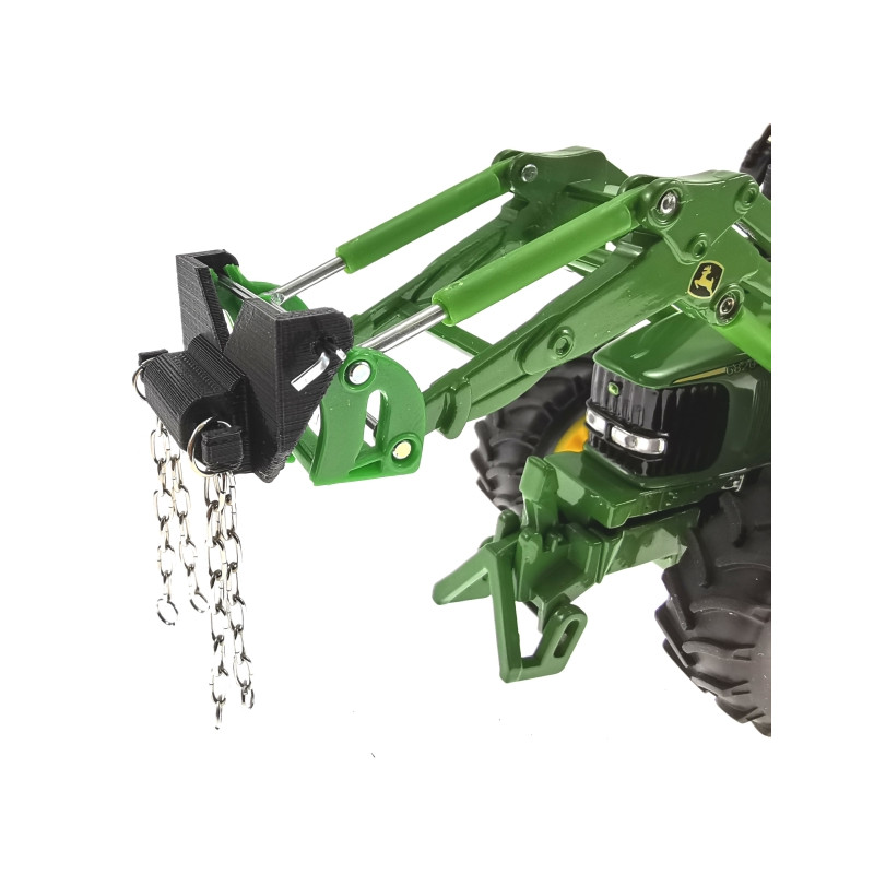 Mit diesem Kettenhalter kannst du genau dies mit deinem Traktor mit Frontlader von Siku.