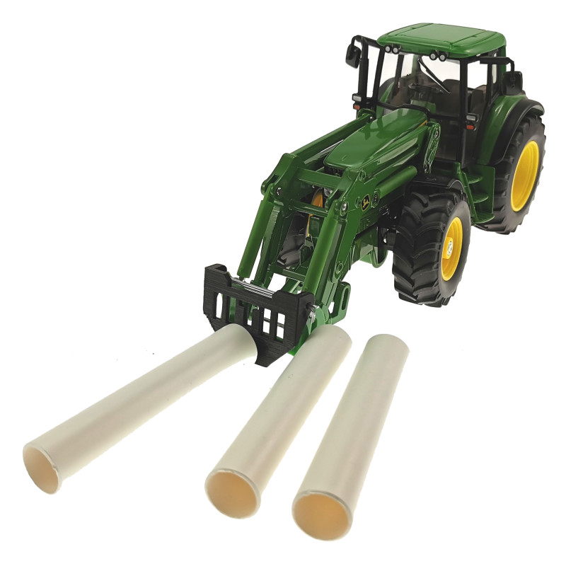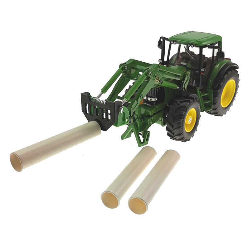 Mit dem Rohr Dorn können die Frontlader Traktoren von Siku Rohre im Maßstab 1:32 transportieren und verladen.