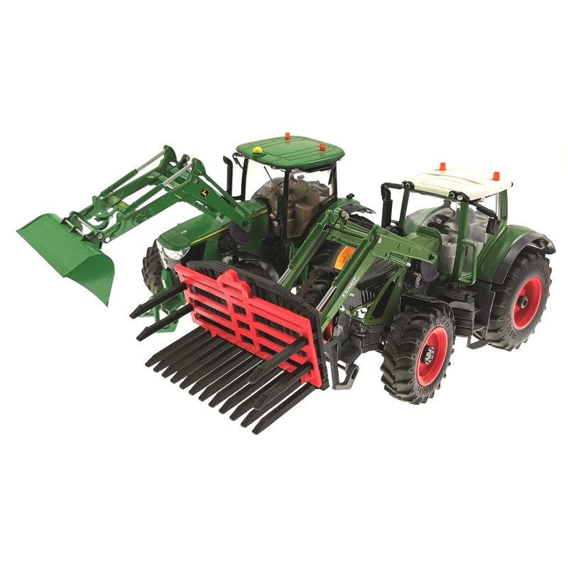 Die Silogabel wird an den Frontlader der ferngesteuerten Siku Control 32 Traktoren gesteckt.