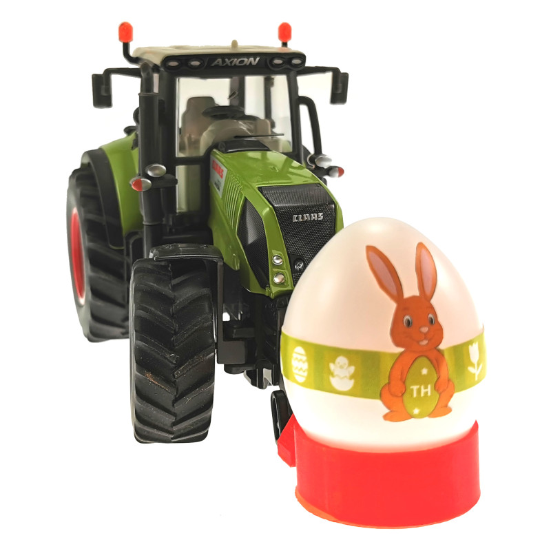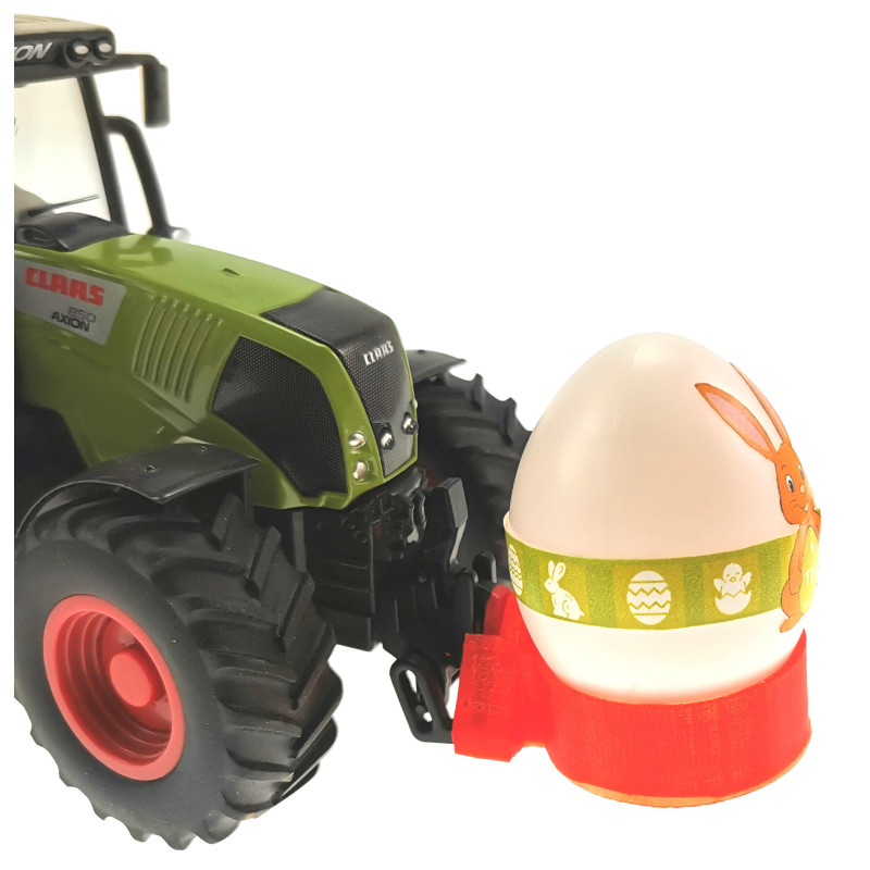 Das Osterei Gewicht wird auf das Frontdreieck bei den Siku Traktoren im Maßstab 1:32 gesteckt.