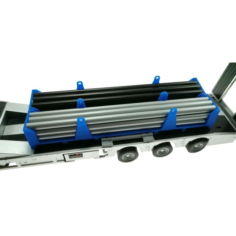 Mit dieser Halterung kann das Rohr-Transportgestell auf dem Siku Control 32 LKW Tieflader transportiert werden.