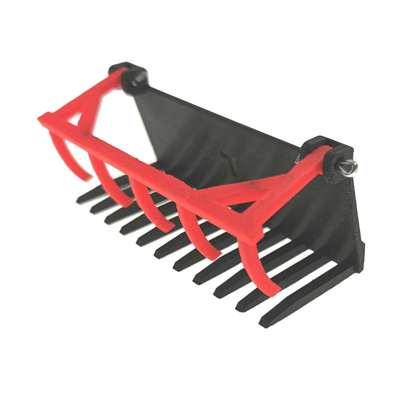 Diese Dungzange hat bewegliche rote Zinken kann das Ladegut fest umschließen.