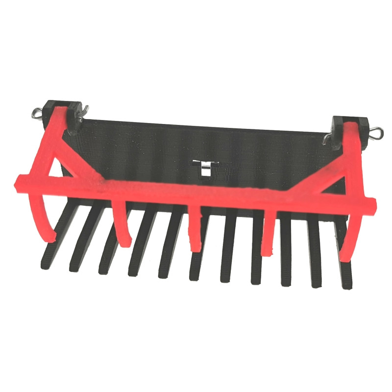 Diese Dungzange hat bewegliche rote Zinken kann das Ladegut fest umschließen.