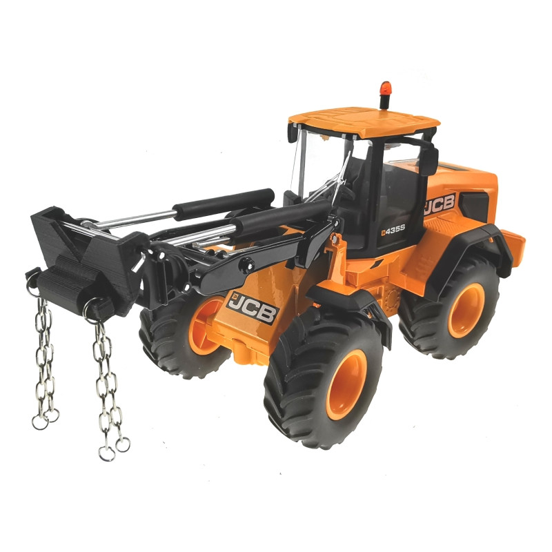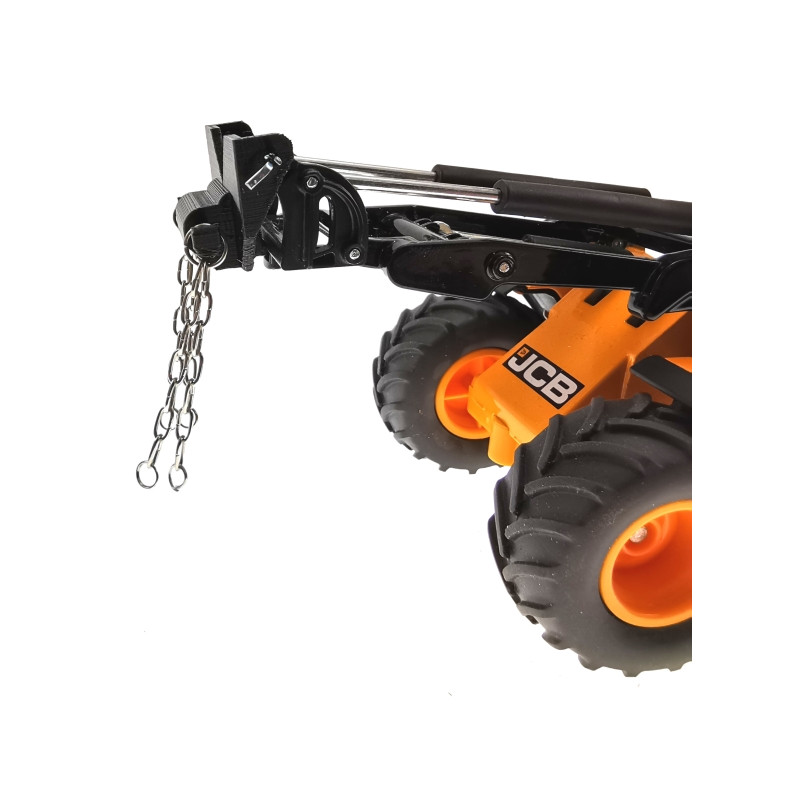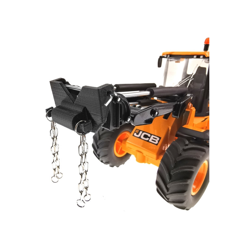 Mit dem Kettenhalter kann der Siku JCB 435S Agri Radlader (3663) 1:32 Absetzmulden, Geräte und Kisten anheben.