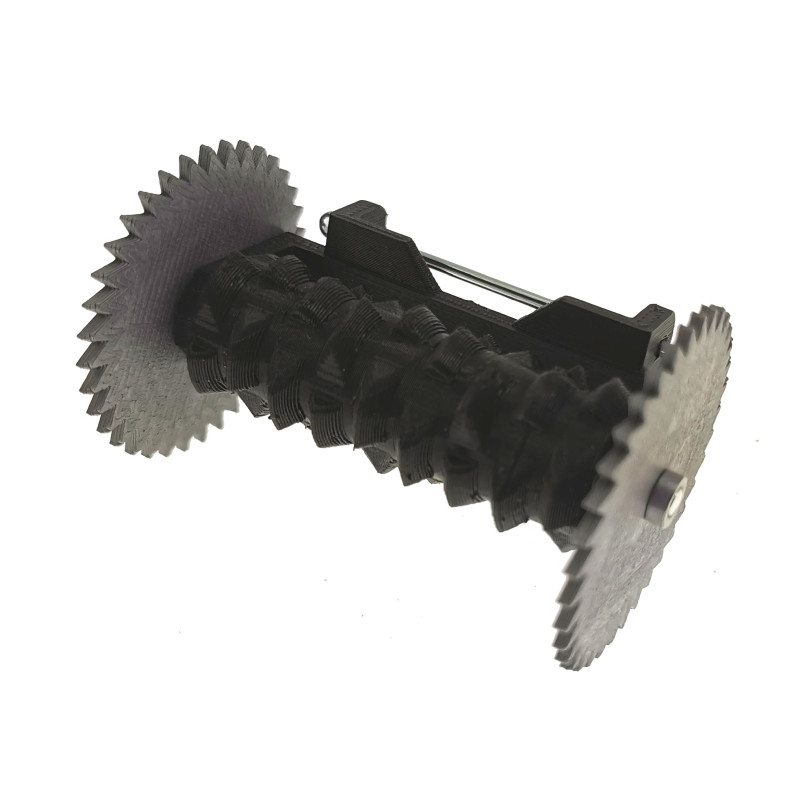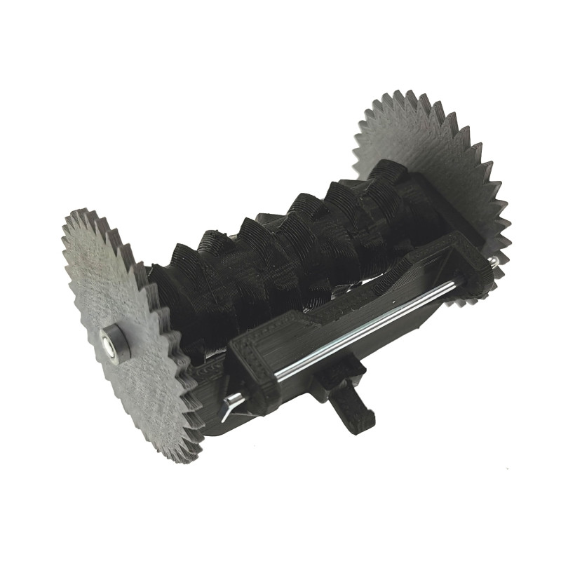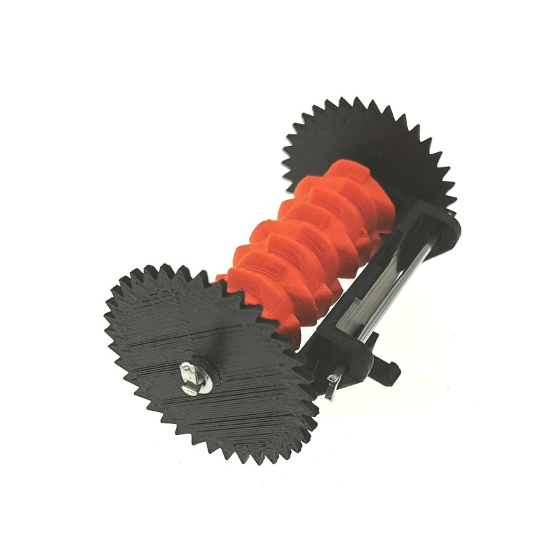 Die zwei mächtigen Sägeblätter und der Walzeneinsatz lassen sich drehen.