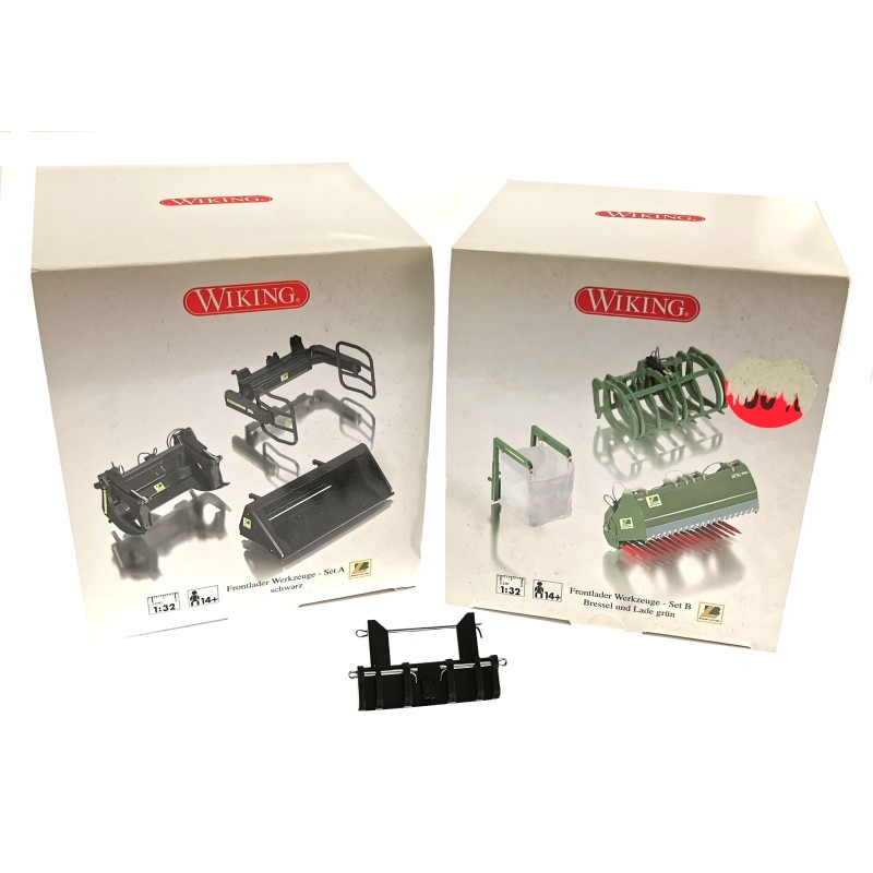 - Wiking 077383 - Frontlader Werkzeuge - Set A Bressel+Lade grün